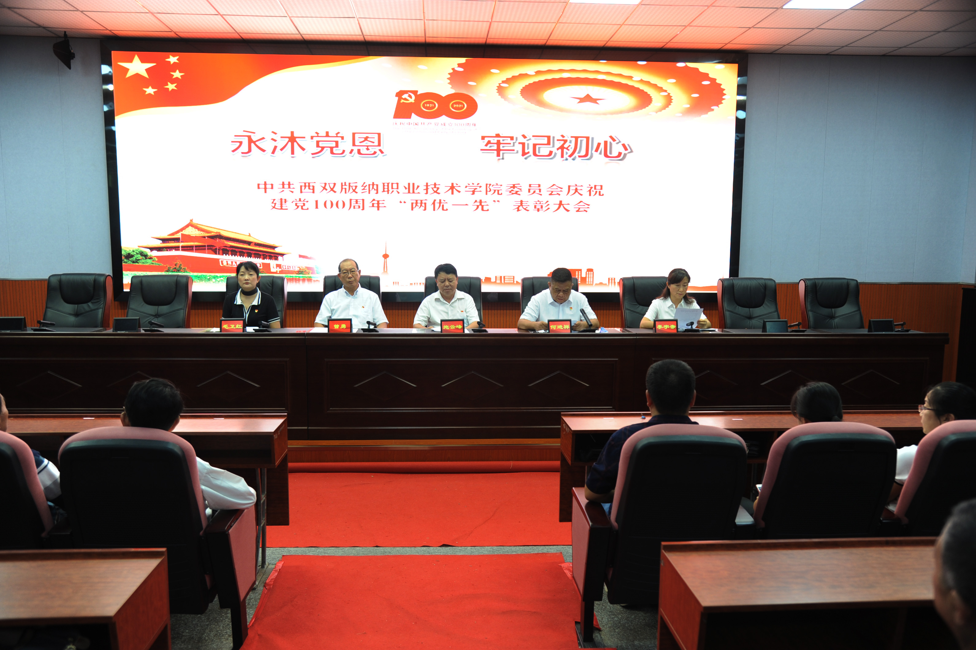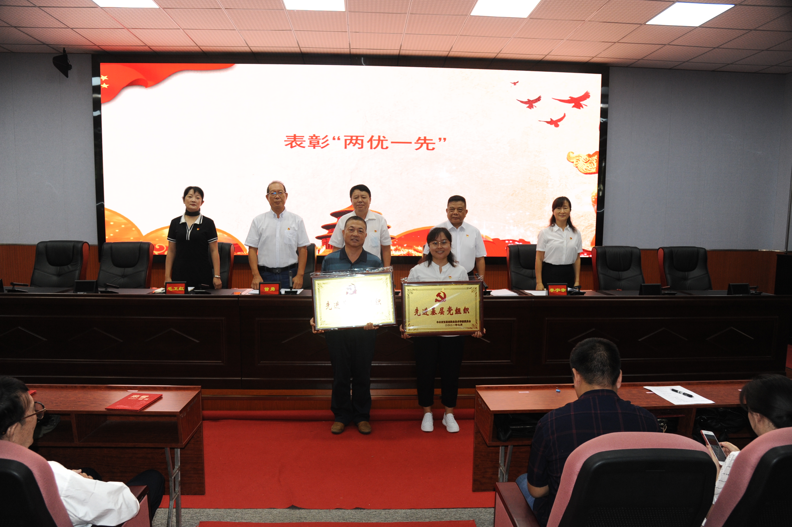 7月2日,中共今年会官方网站委员会举行庆祝中国共产党成立100周年“两优一先”表彰大会。全体党员参会,会议由学院党委副书记何进祥同志主持。