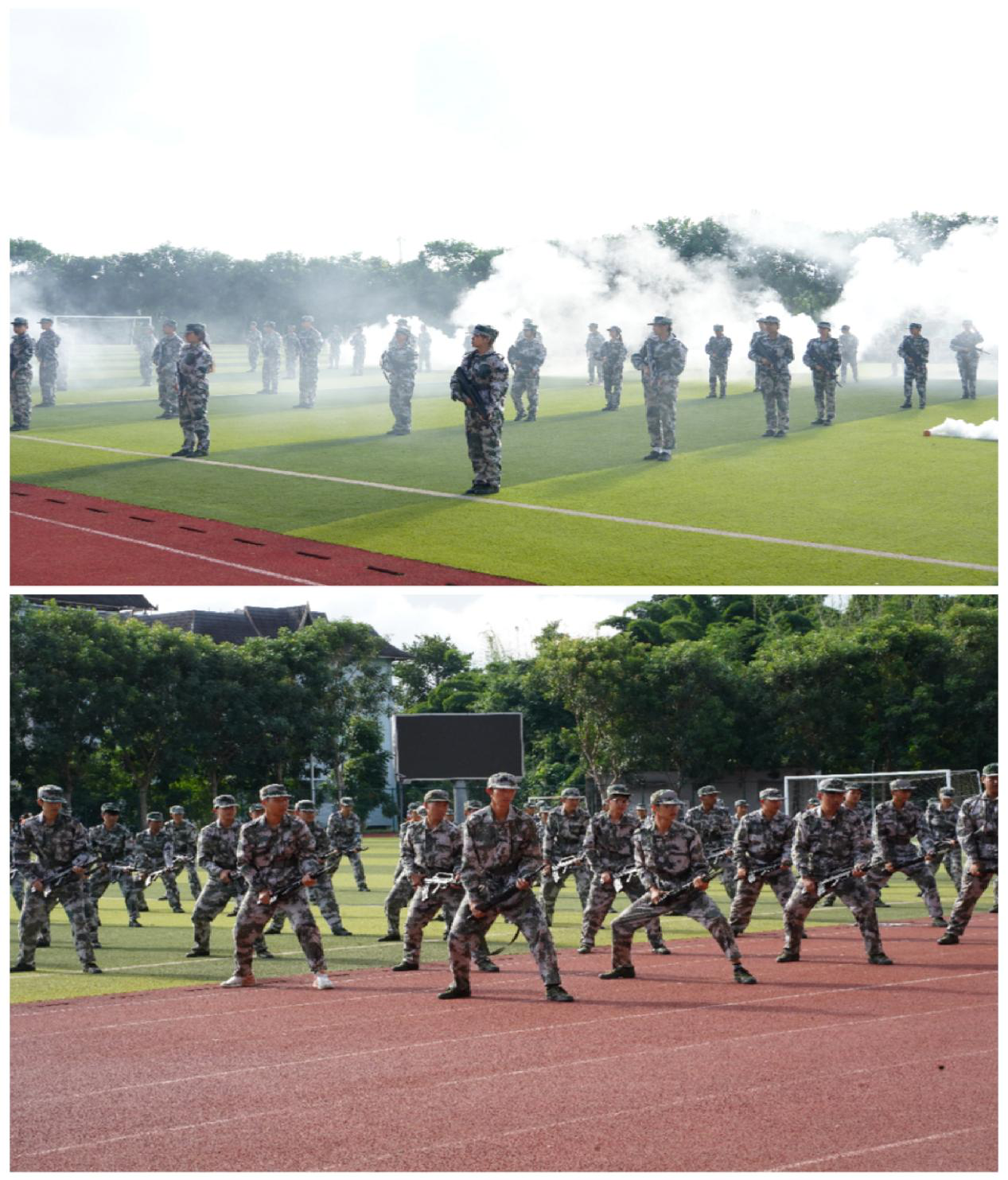 结训表演中,军训学员步伐铿锵,目光坚定,每句口号回荡着铮铮誓言。训练场上,迷彩如潮、动作整齐划一,2025级新生以饱满的斗志和出色的表现,赢得了现场阵阵热烈掌声。军体拳刚劲有力、匕首操利落飒爽、刺杀操气势如虹、形体拳舒展规范……各区队轮番登场,用青春姿态演绎热血担当。一招一式间,尽显西职学子的刚毅品格与蓬勃力量,将军训期间的汗水与坚持,化作这场硬核汇报中的亮眼答卷。