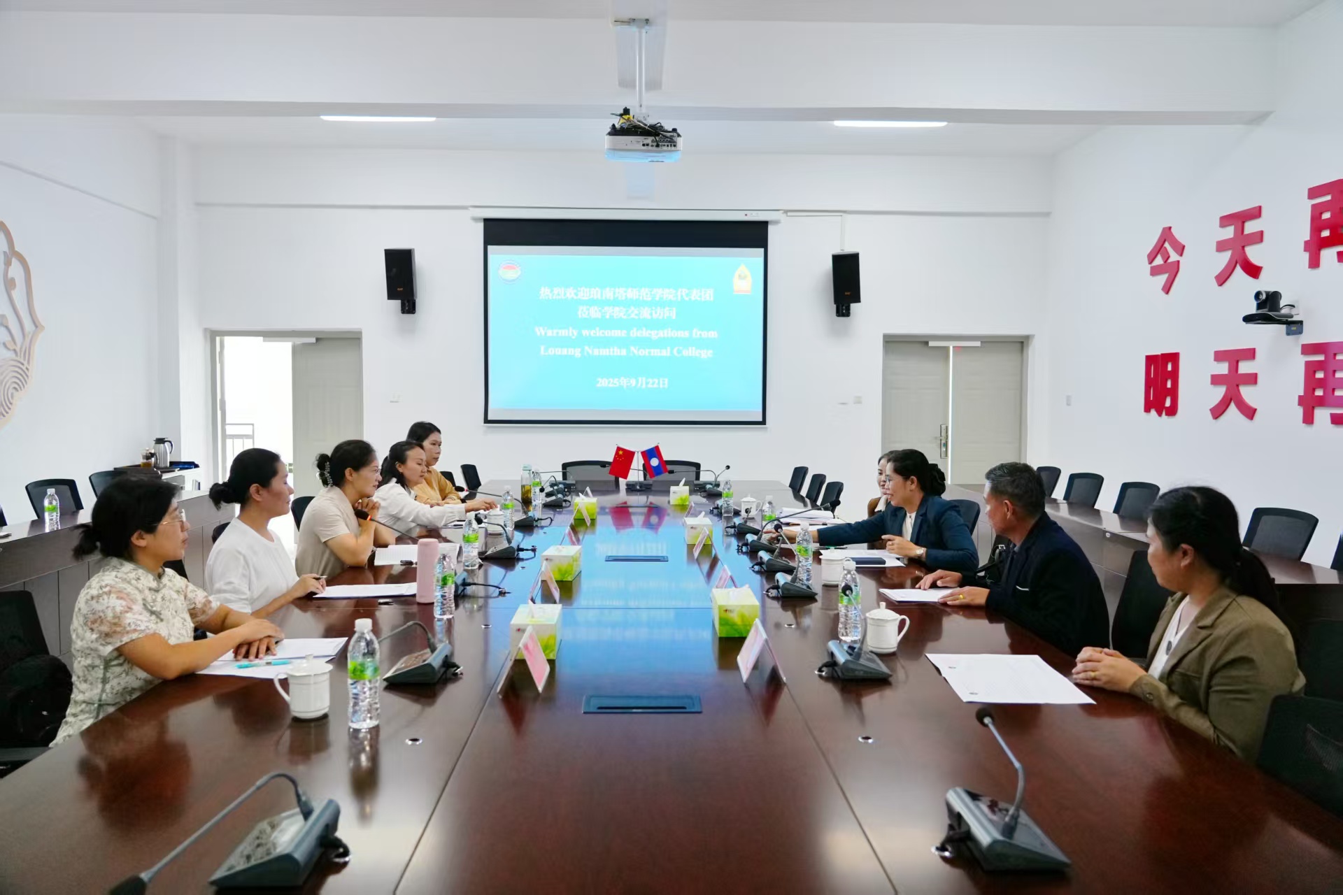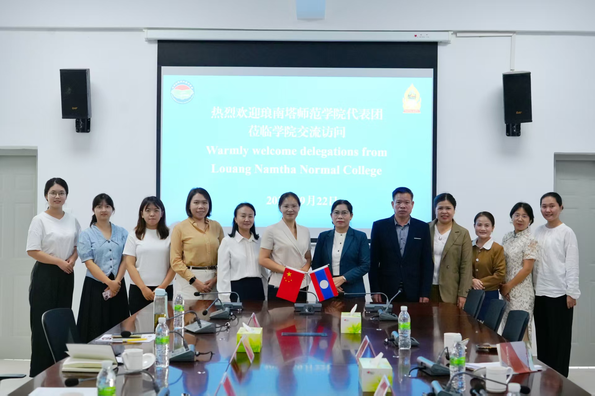 9月22日上午,老挝琅南塔师范学院院长暖站·题帕翁率4人代表团访问今年会,双方围绕深化教育合作举行座谈,学院党委副书记、院长邓小娟出席并致辞,副院长普光琼主持会议。