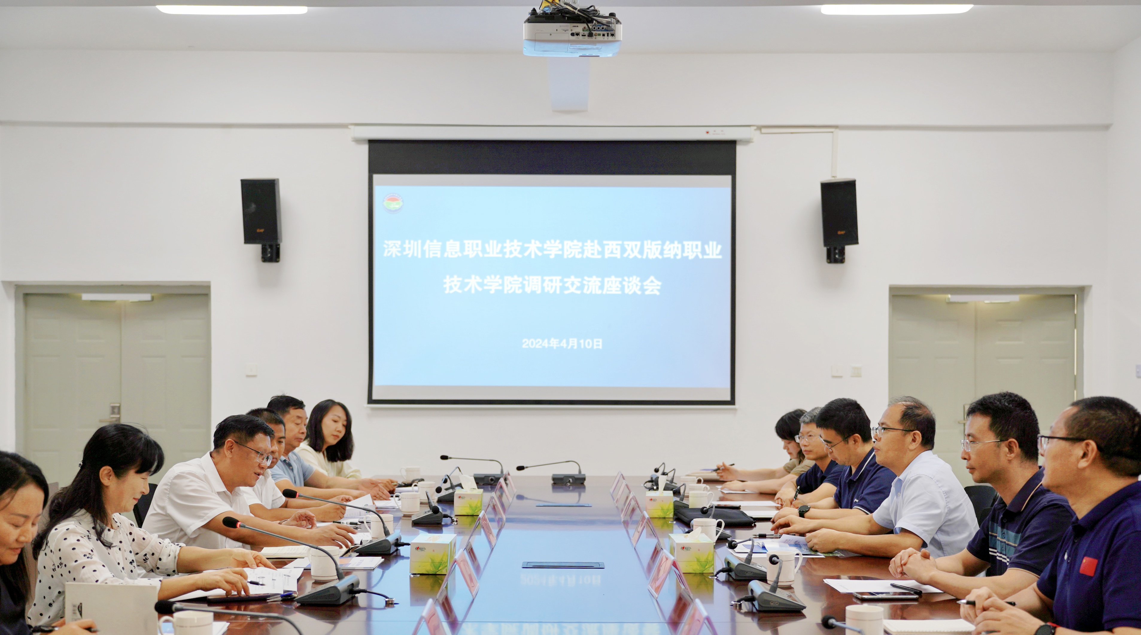 4月10日,深圳信息职业技术学院党委委员、副校长许志良及二级学院院长一行七人到学院调研交流。学院党委副书记、院长袁松平参加座谈会并讲话,副院长李宇赤主持座谈会。