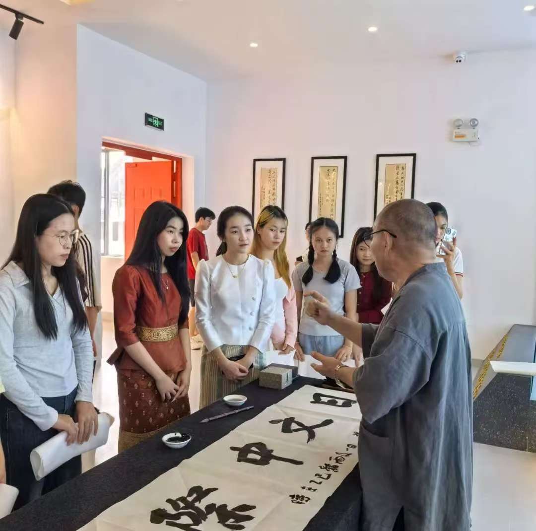 4月21日上午,由对外汉语专业负责人曹慧春老师等人带领留学生参观中国文化体验室,欣赏三位特邀书法家的创作过程,感受中国文化之博大,体验中国文字之优美,进一步增强留学生对中国文化的兴趣。