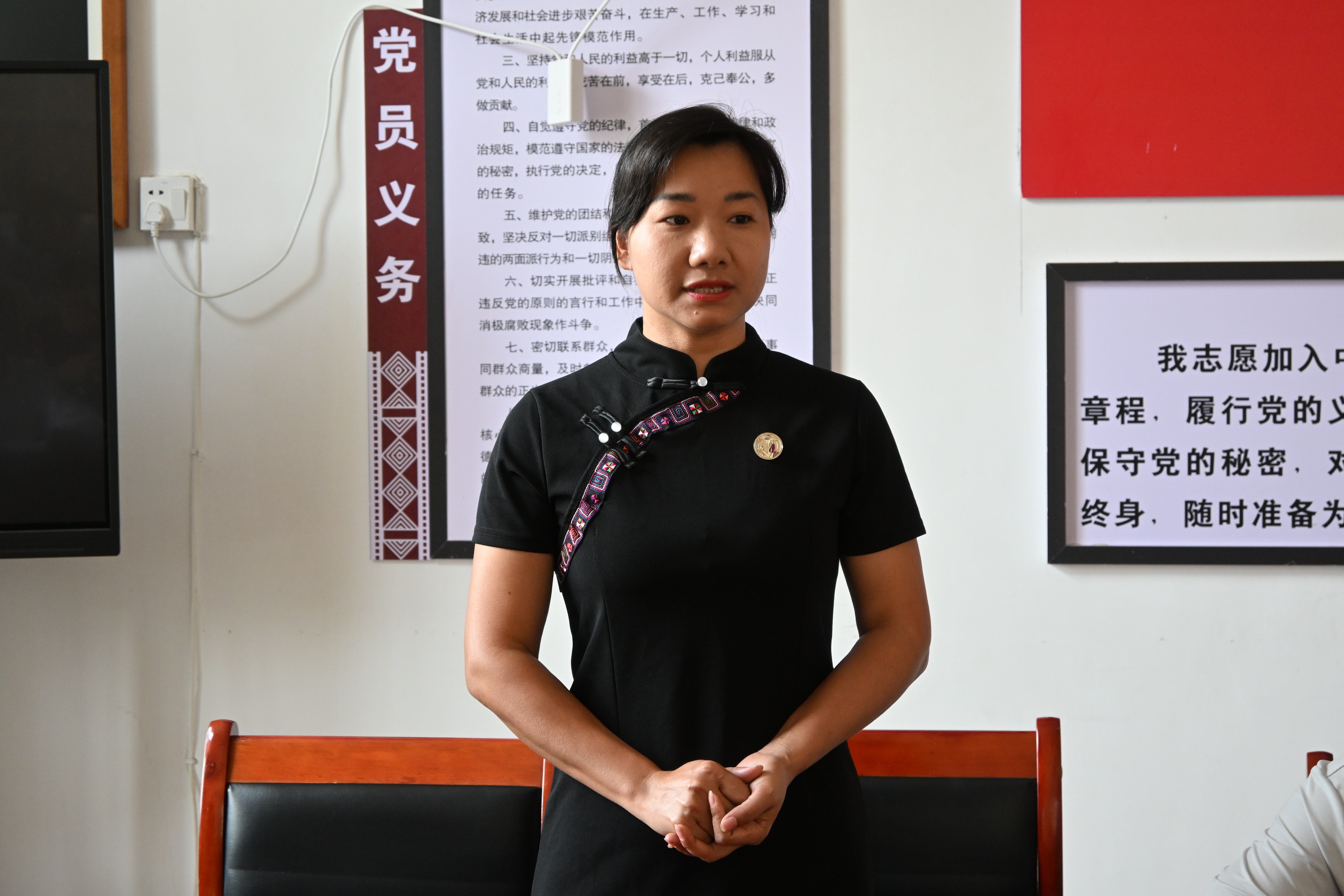 签约结束后,大卡老寨迁周村长向大家介绍了大卡老寨的基本情况,包括优越的生态和独特的村落布局、行政村划分与人口概况、基础设施、党员结构及基层党组织的设置与运行、产业发展等方面内容。接着,哈尼族非遗传承人、乡村振兴致富带头人刘智芳分享了哈尼非遗刺绣工坊的运营成果及其在带动村民增收致富方面的实践经验,展现了传统文化与现代产业融合发展的生动案例。最后,刘珊珊同志作总结发言。她表示,对双方未来的合作充满信心,相信通过党建引领、资源共享、优势互补,必将推动共建工作结出丰硕成果,为实现乡村振兴和高质量发展注入新动能。