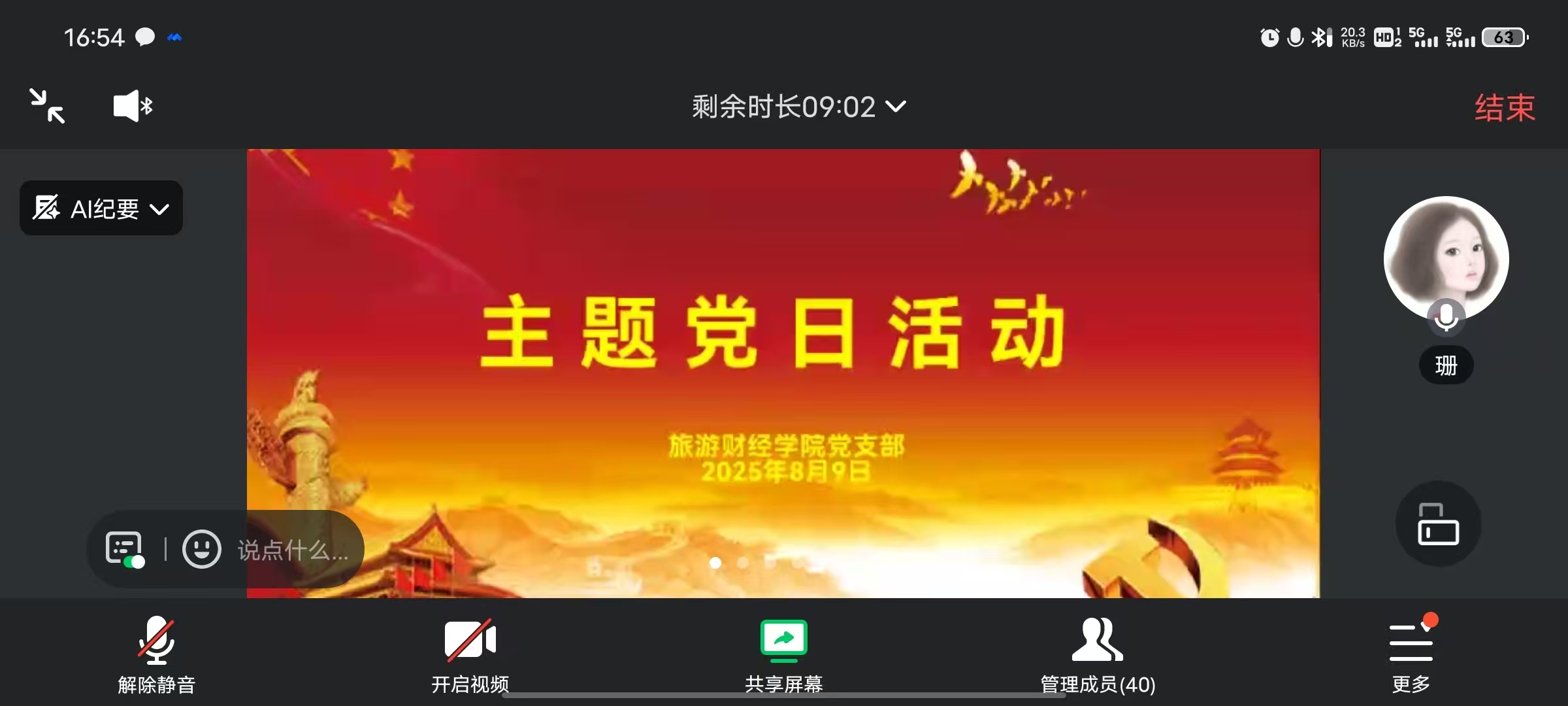 为增强党员纪律规矩意识,规范党徽党旗及党员徽章的使用管理,2025年8月9日,旅游财经学院党支部依托腾讯会议平台,在线开展了8月份主题党日活动。活动由旅游财经学院党支部书记刘珊珊主持,支部全体党员参加。