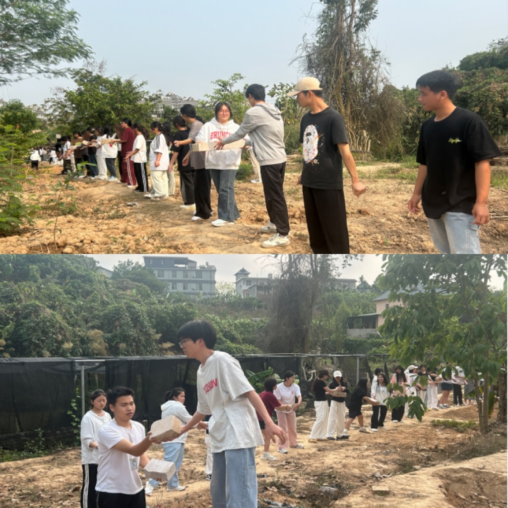 4月2日下午在实训基地开展了搬石活动。在实训基地搬石行动中,学生会分组协作完成石头接力运输,通过通力合作高效完成百余块石材的规整工作,既消除了安全隐患,又重塑了基地景观空间,更让同学们在劳动中体会到团结协作的力量。