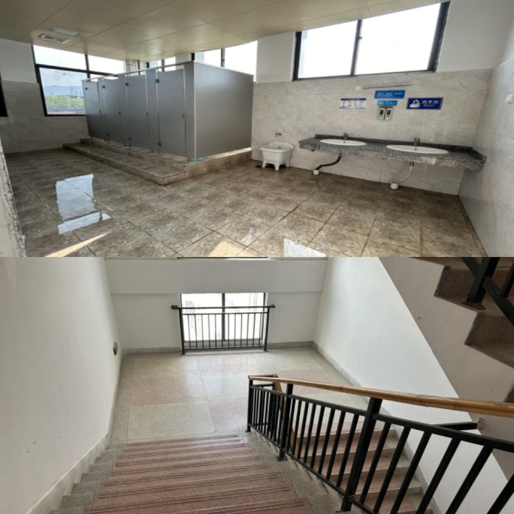 继而在教学楼清扫行动中,志愿者对走廊、楼梯间、卫生间等区域进行深度清洁。运用专业工具对地面污渍、扶手积尘及卫浴设施开展精细化处理,累计清理卫生死角26处,使教学环境焕发新生。