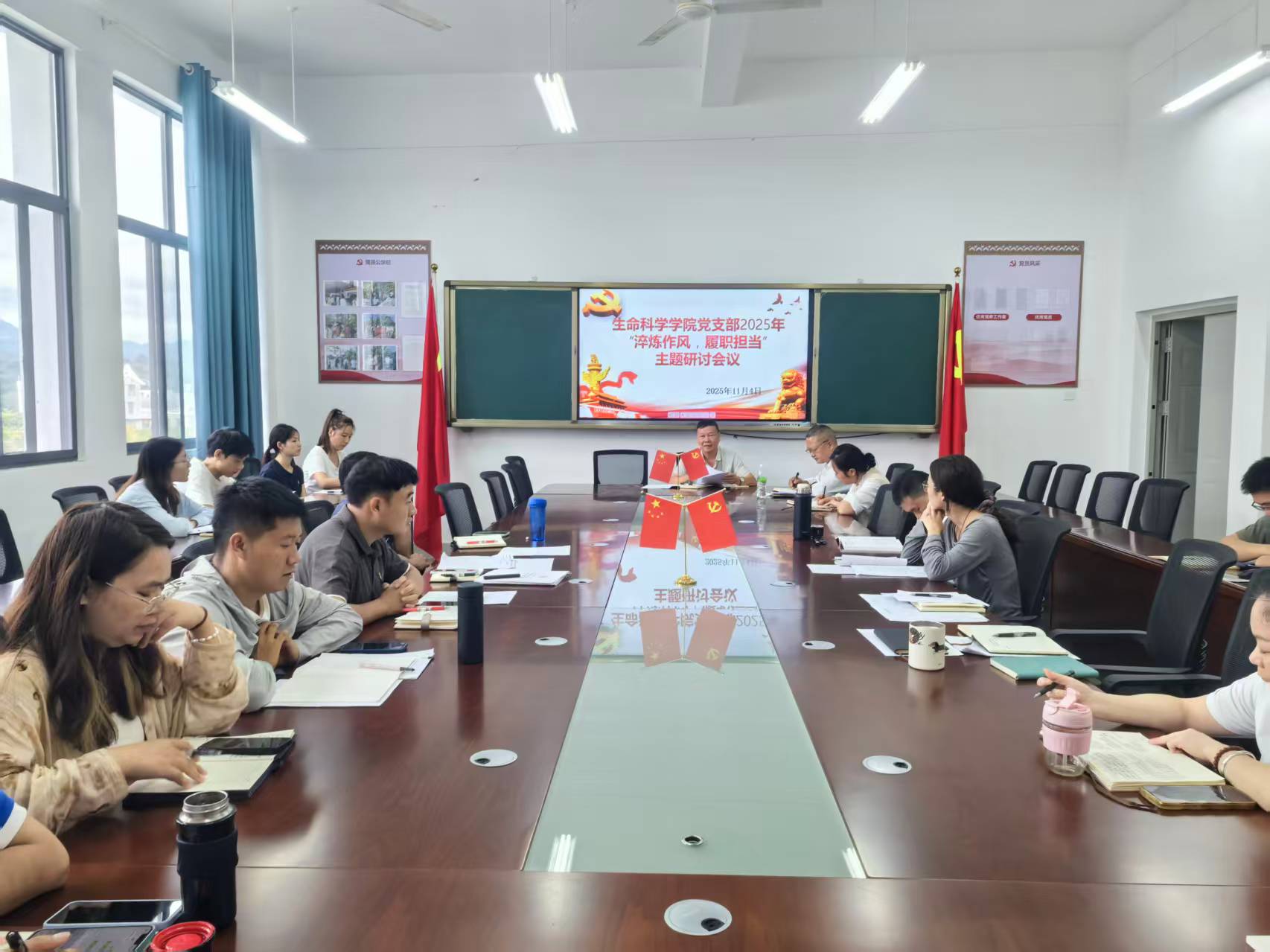 大会最后,生命科学学院党支部部分党员围绕“淬炼作风,履职担当”主题进行了交流发言。生命科学学院党支部组织委员李林倩表示作为党员要以“党性”为魂,守住“严”的底线,把民生小事办实办好。生命科学学院党支部刘果变表示,作为辅导员要严守师德师风“红线”,坚持公平、公正、公开做事,用清正廉洁的作风赢得学生信任、家长认可、组织放心。