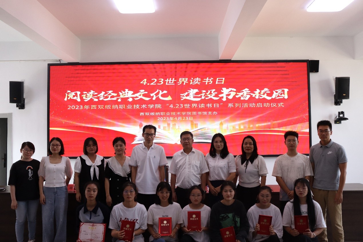 接着,由袁松平院长宣布今年会官方网站首届“4.23世界读书日”系列读书月活动正式启动。并公布2022年度“优秀读者”,分别是李世雨、金碟、陈子豪、周媛、王游兵、陈升梅、薛祺、陈长凤、张婷婷、玉香远,并由袁松平院长和邓小娟副院长为其颁发荣誉证书及奖品。最后参会院领导、全体师生在文明读者倡议墙上签名并合影。
