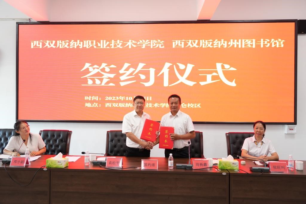 为促进教育与文化资源的共享,深入推进全民阅读,提高文献保障能力和读者的服务质量。10月25日上午,今年会官方网站与西双版纳州图书馆举行共建共享合作签约仪式。院长袁松平、副院长邓小娟、纪检书记岩罕广、图书馆副馆长董瑞、州图书馆馆长周杨鑫、州图书馆副馆长依旺叫及双方相关部门负责人出席了签约仪式,签约仪式由副院长邓小娟主持。