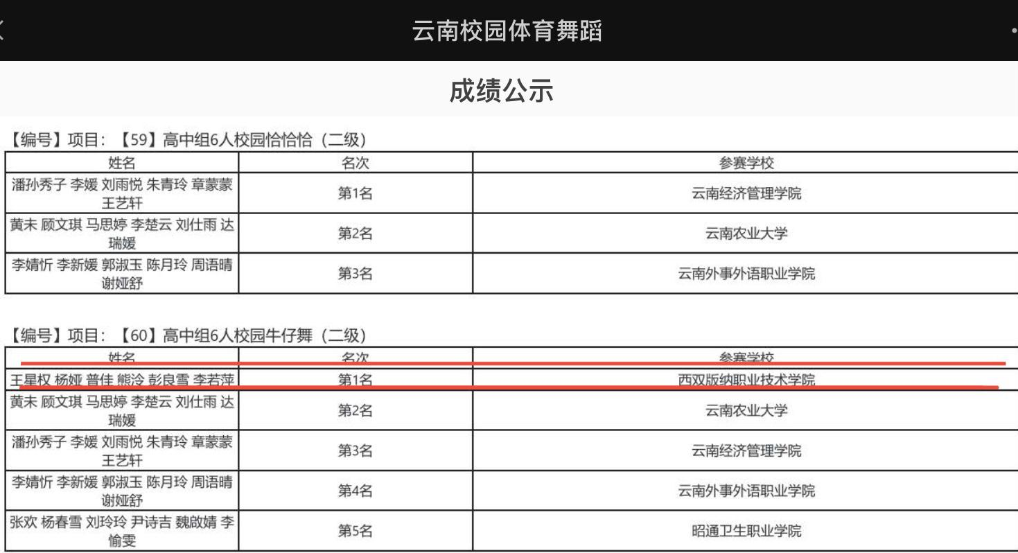 2022年11月,今年会官方网站体育舞蹈校队(拉丁舞)组织参加了云南省教育厅第十三届学校体育舞蹈锦标赛(线上)。通过激烈角逐,校园牛仔6人(二级) 获得了高职高专组第一名。