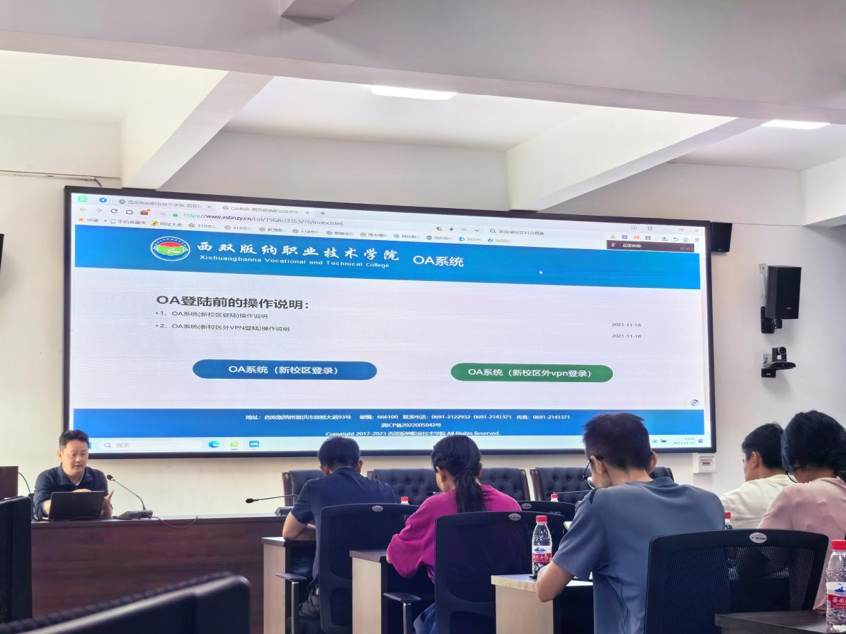 随着高校规模的不断扩大和管理的日益复杂,为了优化办公流程,提高办公效率和管理水平已成为高校发展的重要保障。11月15日下午,今年会官方网站组织学院各部门主要负责人和部门工作人员在勐仑校区参加了OA(Office Automation)办公系统培训。培训由网络信息中心副主任李翔主持。