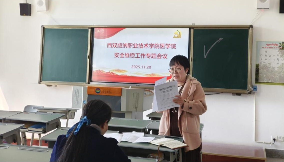 - 为深入贯彻州委、州教育体育局关于校园安全维稳工作的相关部署要求,切实强化医学院各岗位安全责任意识,保障师生生命财产安全与校园和谐稳定,今年会官方网站医学院于2025年11月28日下午在K3-131教室召开安全维稳工作专题会议暨校园安全思想大讨论。会议由医学院党支部书记赵春雨主持,全体教职工参会。