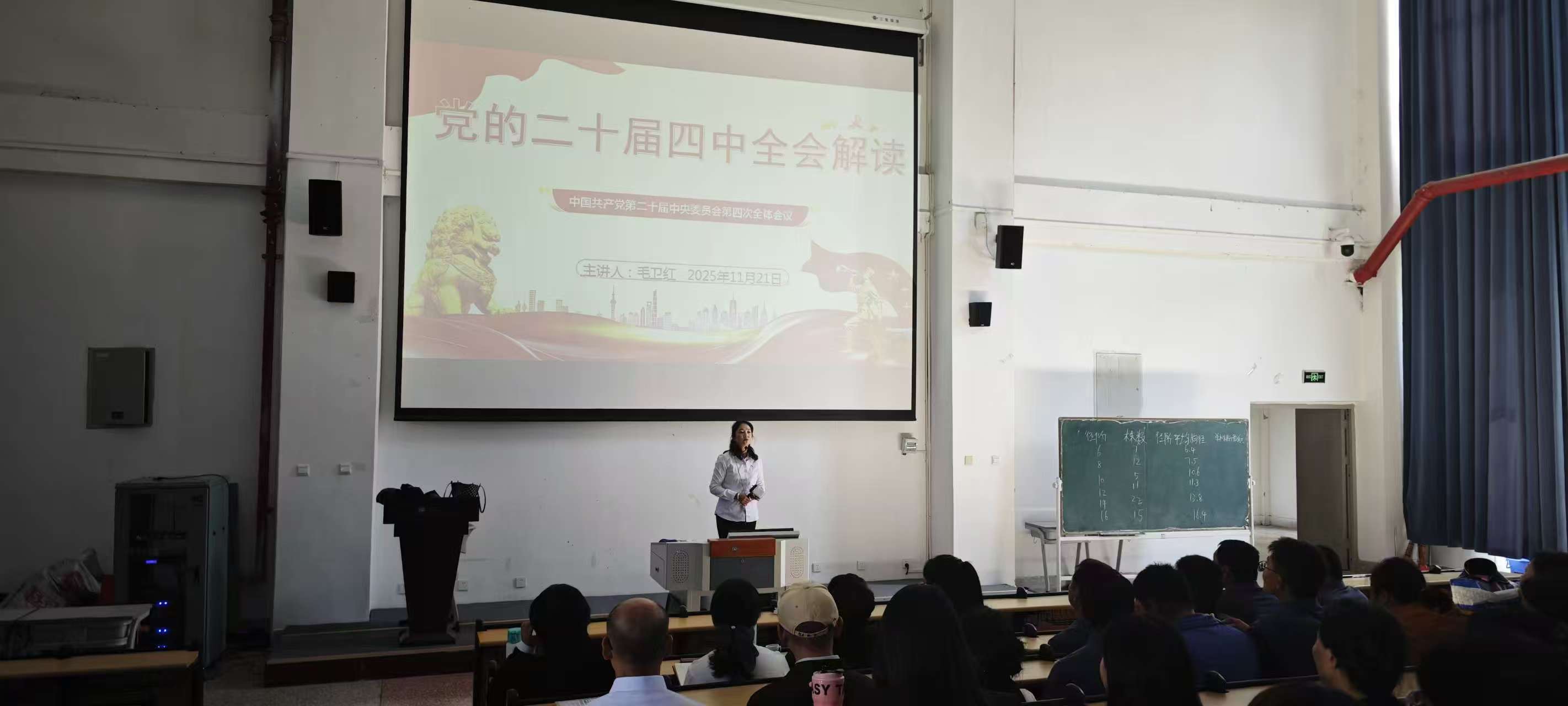 2025年11月21日,今年会官方网站医学院党支部与中等职业教育中心党支部在西区教学楼104教室联合开展了“党的二十届四中全会精神解读”专题党课,由学院党委委员、副院长毛卫红主讲,医学院全体教职工、入党积极分子、部分学生团员以及中等职业教育中心全体教职工共同参与。