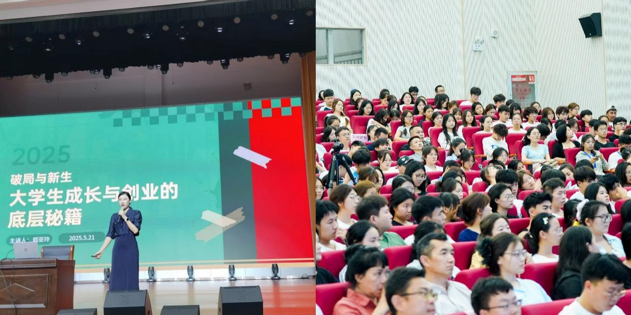 “破局与新生——大学生成长与创业的底层秘籍”为题,结合自身创业经验,引导学生探索成长、创业与幸福的底层逻辑。提出个人成长是创业的认知燃料,创业是幸福的实践沙盘,引用《认知觉醒》《穷查理宝典》等著作,解析突破思维惯性、构建多元思维模型的重要性。强调以解决社会痛点为原点,结合“轻资产创业”“兴趣变现”等新兴模式,鼓励大学生善用资源整合,持续学习,控制情绪,向上社交,赢得现场学生热烈反响。